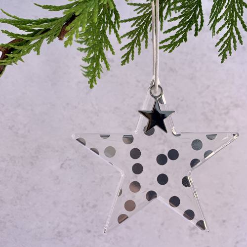 Glass Star Bauble - Silver Dots