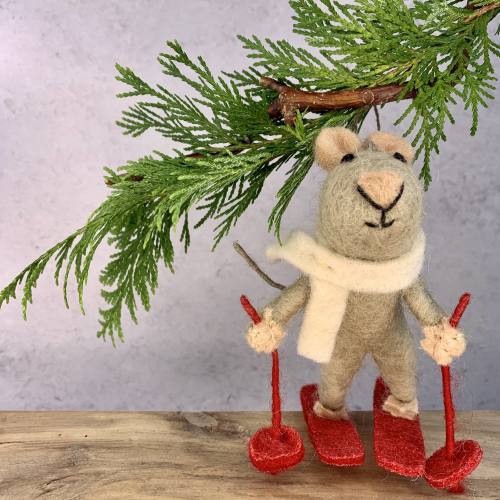Marcel The Mouse loves getting out in the snow on his bright red skis.
